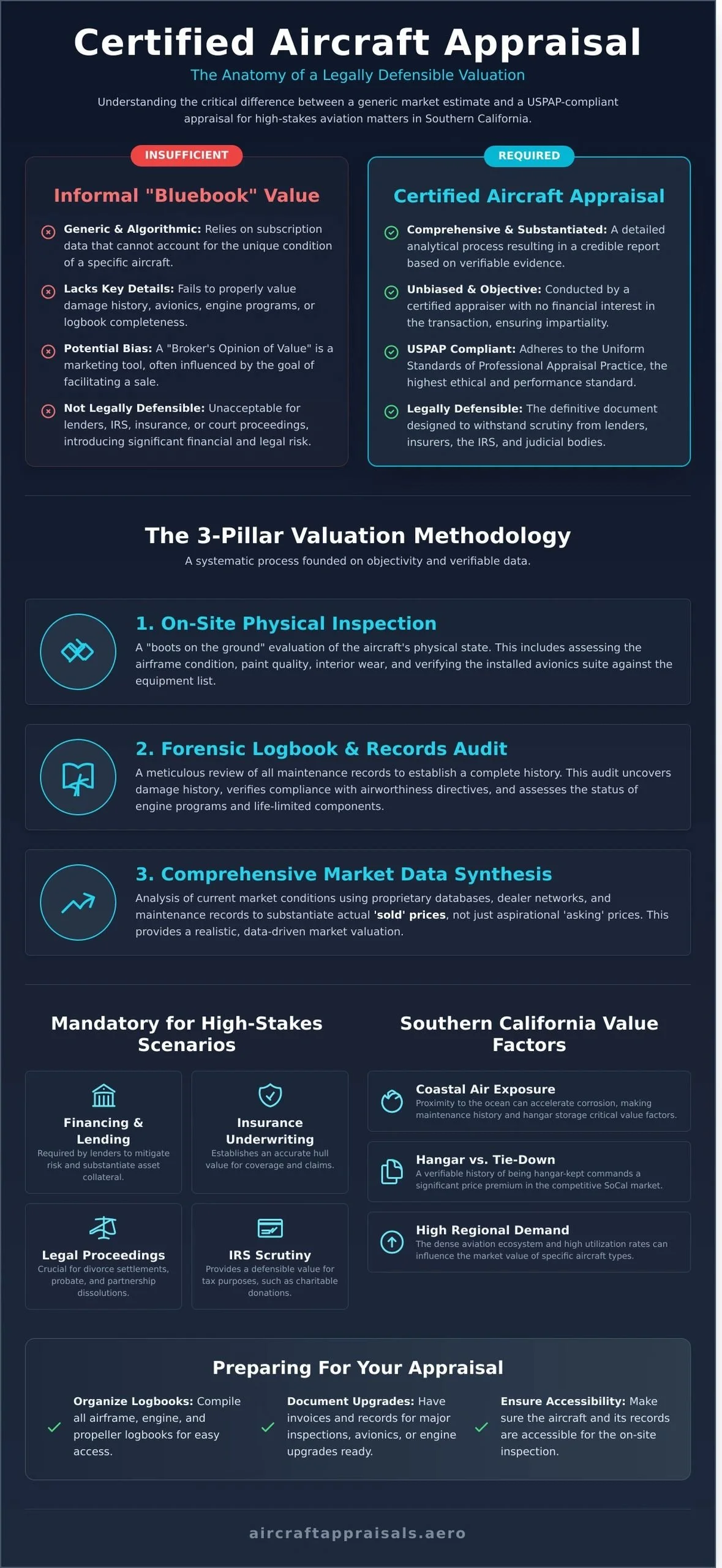 An authoritative analysis of the certified aircraft appraisal process for Southern California owners, lenders, and legal professionals. This guide provides a definitive framework for understanding the requirements, methodology, and regional factors that influence the value of aviation assets in one of the world's most dynamic markets.